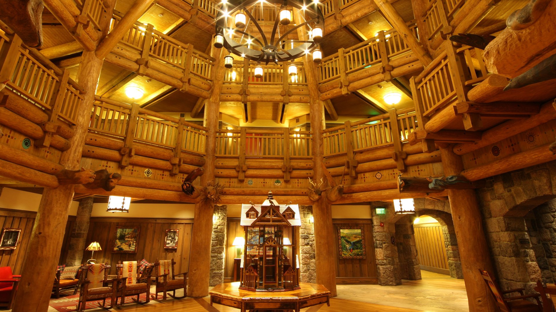 The Boulder Ridge Villas at Disney's Wilderness Lodge celebrate the rustic majesty of the Pacific Northwest and the grandeur of the National Parks. Modeled after the grand National Park lodges from the turn of the century, the Wilderness Lodge applauds American craftsmanship while honoring the untamed wilderness. Explore nature trails or relax on a rocking chair with a view of a nearby brook. Intricate and towering totem poles adorn the resort's interior, as well as a roaring fireplace complete with comfy armchairs.