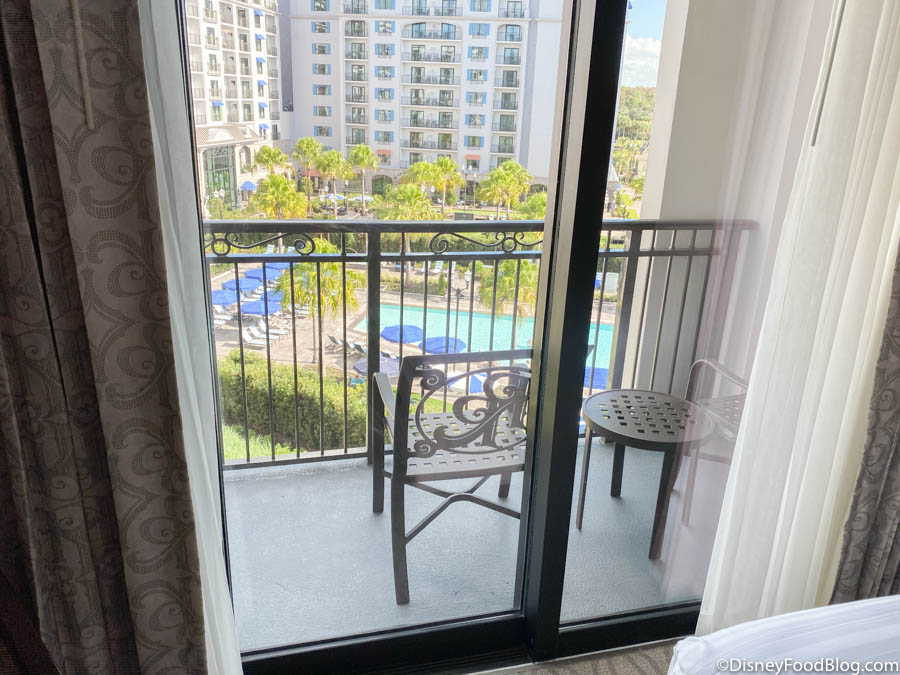 The Tower Studio includes a private balcony with scenic views and seating for two, which allows for an intimate, modern setting.