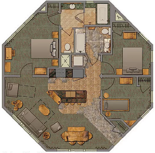 Designed in a style decreed “cabin casual,” the Treehouse Villas